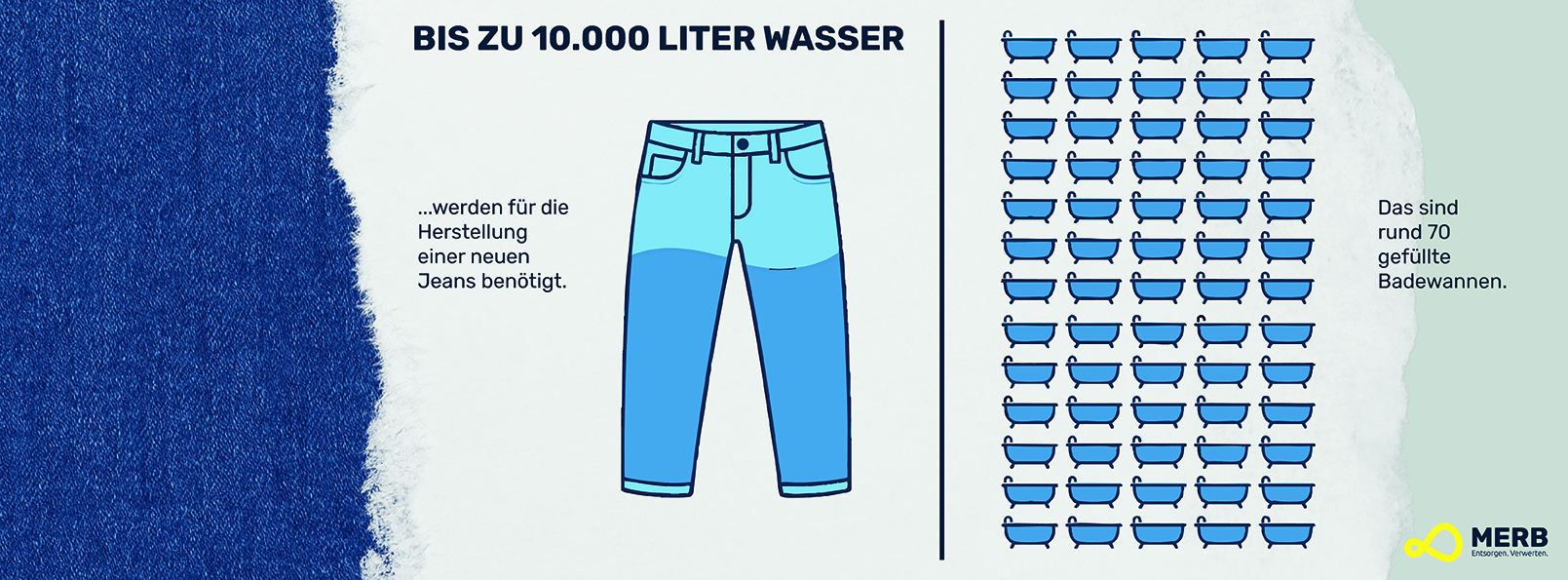 Für die Herstellung einer neuen Jeans werden bis zu 10.000 Liter Wasser benötigt – das sind rund 70 volle Badewannen. Eine gespendete Jeans kann also richtig viel bewirken.