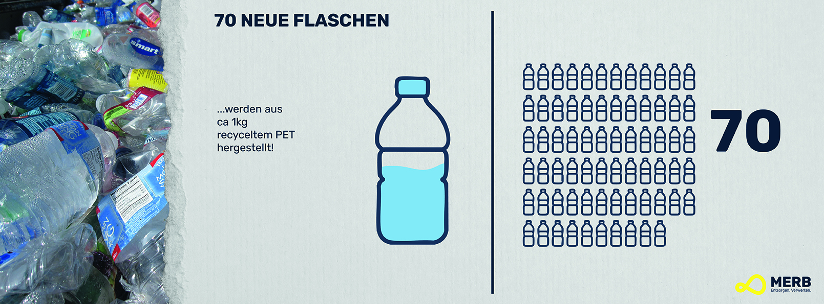 Aus 1 kg recyceltem PET entstehen bis zu 70 neue Flaschen.