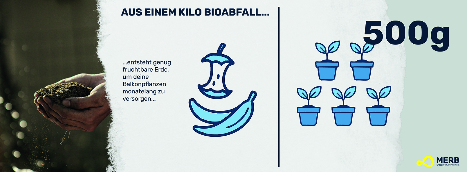 Aus 1 kg Bioabfall entstehen rund 500g fruchtbare Erde – genug, um deine Balkonpflanzen monatelang zu versorgen.
